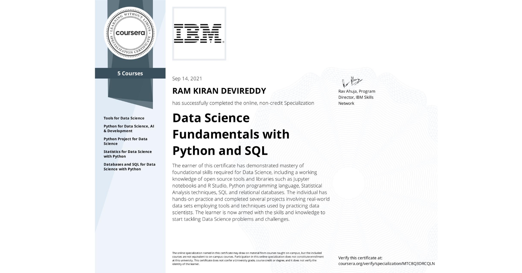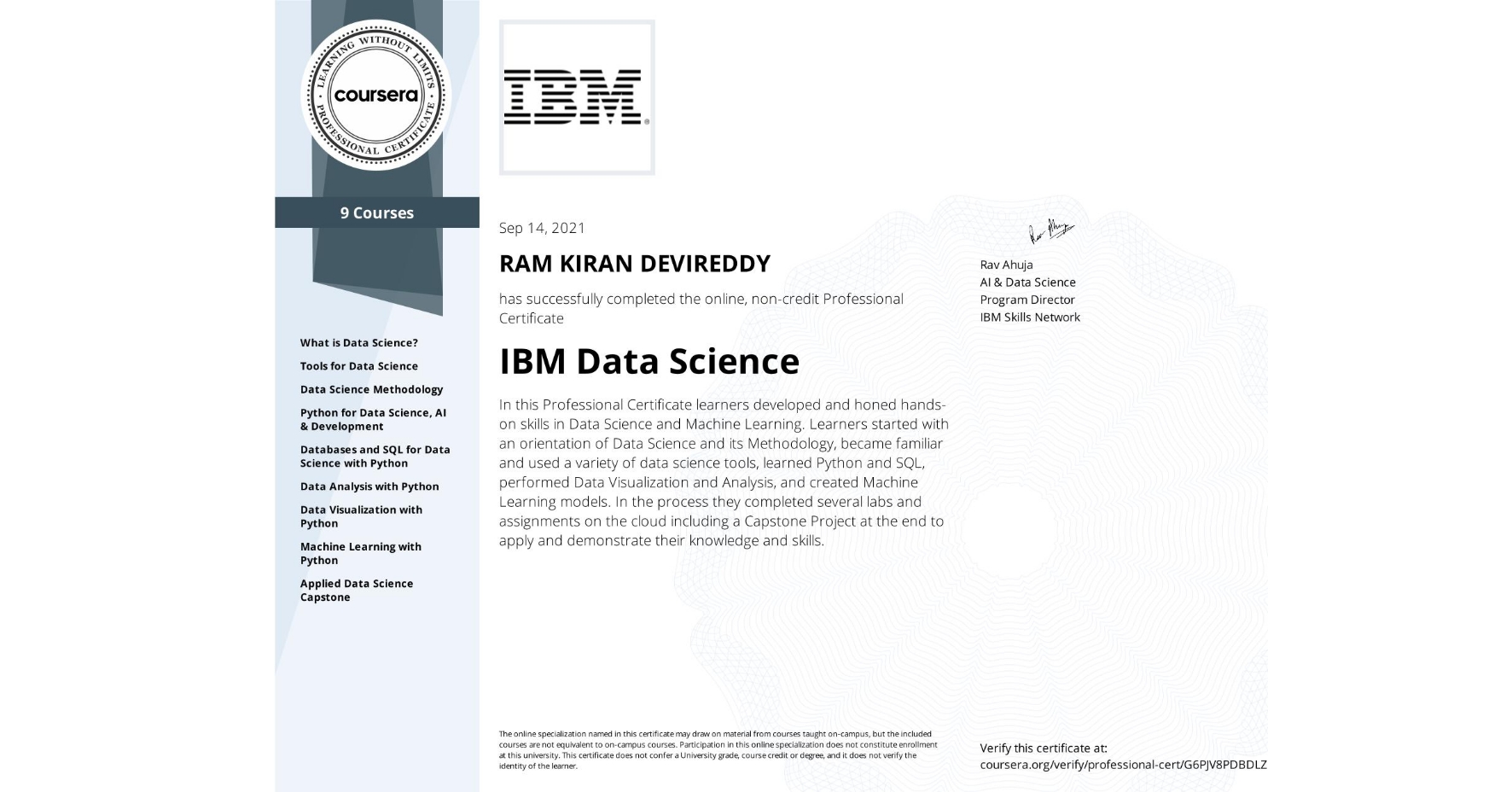 - Coursework: Objected Oriented Programming, C and Data Structures, Probability and Stochastic Models, Single Variable Calculus and Matrix Algebra, Multi Variate Calculus, Discrete Mathematics, LabVIEW, Fundamentals of IT, Coding Skills in Python, Signal, and Image Processing, MATLAB