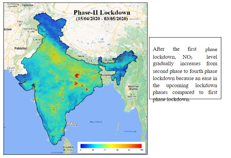 transportation activities. Another major reason is the closure of industrial activities around the major cities, which is also a major source of air pollution, particularly NO2. However, some locations still show higher NO2 level. That were identifiesd as thermal power plant emissions in Jharkhand, Chhattisgarh, West- Bengal, Orisa and